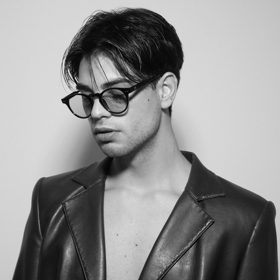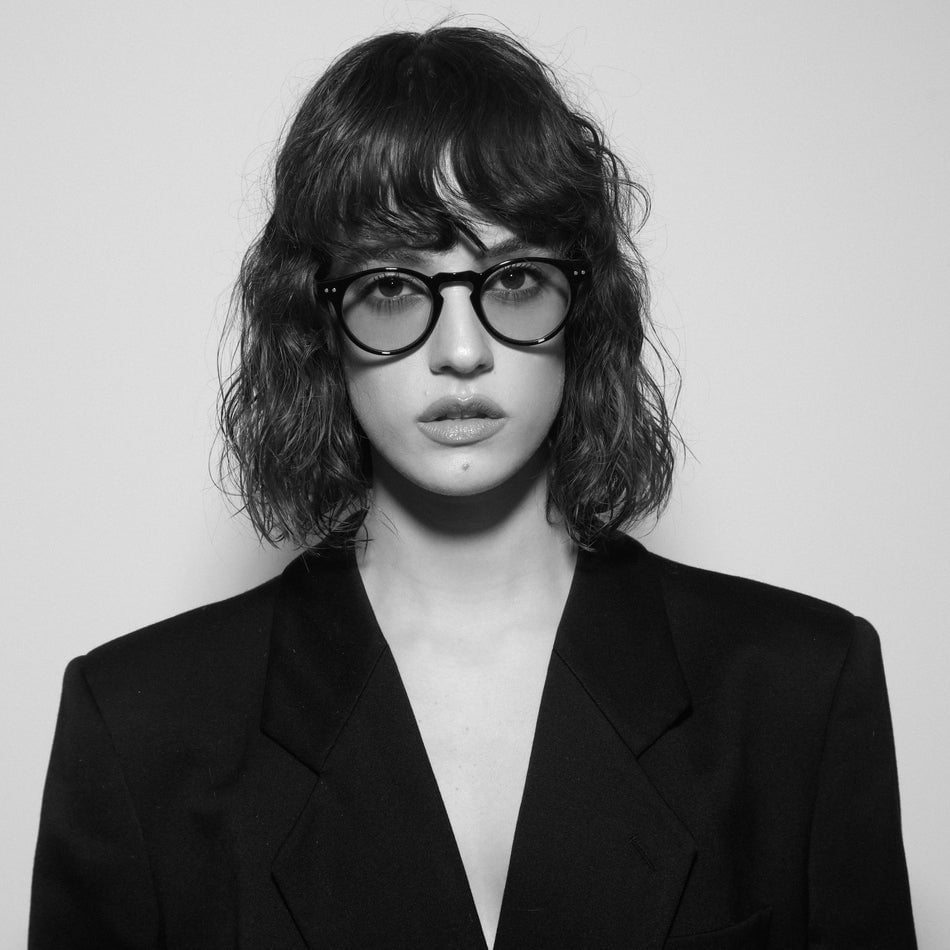 Montatura in acetato unisex dai toni forti e moderni .